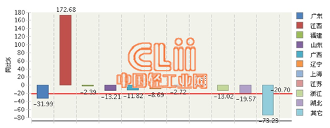 2016年上半年在我国陶瓷砖出口主要地区中,仅江西、江苏出口为正增长,广东下降幅度最大,详见图2。其中江西累计出口5亿美元,同比增长172.68%,占我国陶瓷砖出口总额的16.49%,与上年同期相比,占比提高了11.42个百分点,由上年第四位升至第二。
