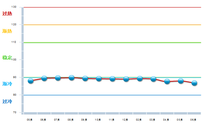 2015年5月至2016年6月,中轻皮革景气指数基本稳定,在90附近小幅波动,处于稳定提示区的下半区运行,至6月已经在渐冷提示区运行16个月,且有下行趋势(参见图3)。
