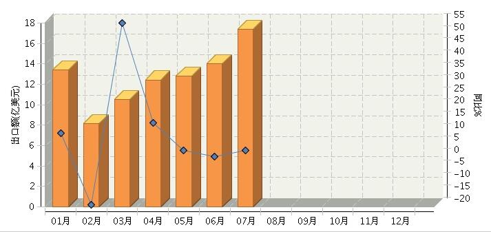 2016年1月~7月,全国玩具行业累计完成出口额同比增长6.51%。其中:7月份完成出口额17.36亿美元,同比增长3.12%。