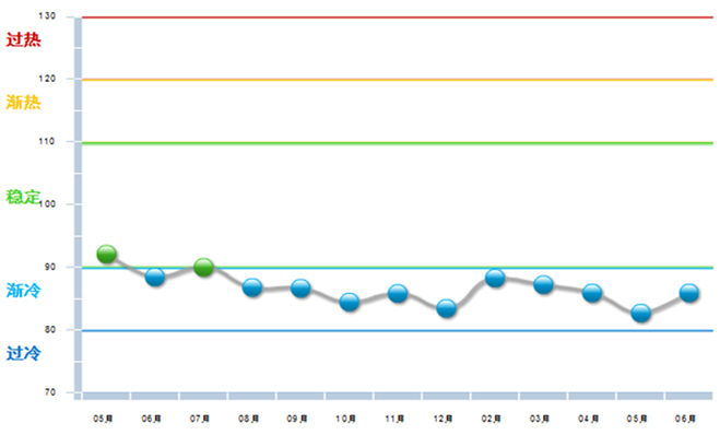 自2015年下半年以来,自行车行业利润景气指数一直处于渐冷区间。进入2016年后,利润指数虽然略有上升,但依然位于渐冷区间,3月份以来逐渐走低,6月份略有上扬。(见图1)。