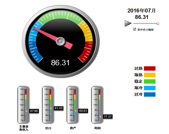 图2 2016年7月 皮革行业景气指数分指标显示状况