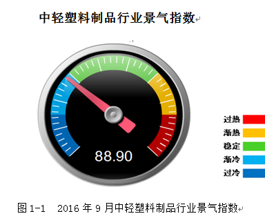 中国轻工业经济运行及预测预警系统监测显示:2016年9月份中轻塑料景气指数为88.9,比上月回落0.18点。