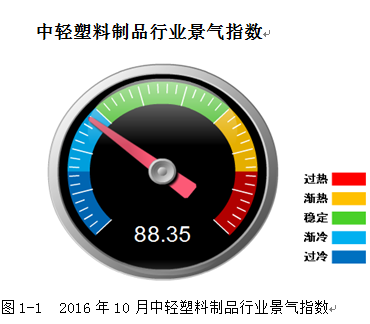 中国轻工业经济运行及预测预警系统监测显示:2016年10月份中轻塑料景气指数为88.35,比上月回落0.55点。