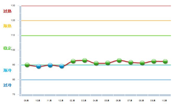图2 2015.9—2016.10自行车行业景气指数变化态势