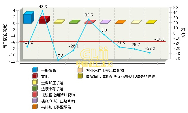 2016年1月~9月,全国白炽灯泡行业完成累计出口额4.62亿美元,同比增长-10.83%。其中,一般贸易完成累计出口额2.81亿美元(占60.67%),同比增长-21.16%;其他完成累计出口额1.29亿美元(占27.92%),同比增长48.85%;进料加工贸易完成累计出口额0.24亿美元(占5.11%),同比增长-47.77%;边境小额贸易完成累计出口额0.11亿美元(占2.36%),同比增长-28.12%;保税区仓储转口货物完成累计出口额0.1亿美元(占2.23%),同比增长32.62%;保税仓库进出境货物完成累计出口额0.08亿美元(占1.64%),同比增长2.98%;来料加工装配贸易完成累计出口额0亿美元(占0.04%),同比增长-21.3%;对外承包工程出口货物完成累计出口额0亿美元(占0.03%),同比增长-25.66%;国家间﹑ 国际组织无偿援助和赠送的物资完成累计出口额0亿美元(占0%),同比增长-32.91%。