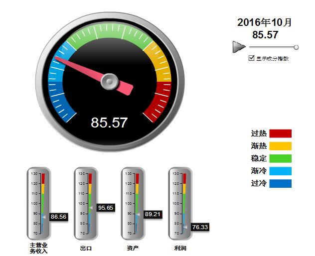 图2 2016年10月 皮革行业景气指数分指标显示状况
