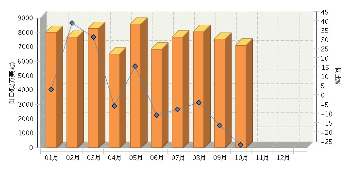 2016年1月~10月,全国饮料行业累计完成出口额76,238.00万美元,同比增长2.39%。但从下半年以来月度增长逐月下降,连续出现负增长,且有降幅幅扩大趋势,特别是10月份完成出口额同比下降达23.4 9%。