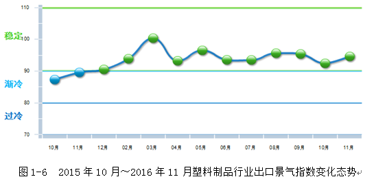 2016年塑料出口景气指数稳定区间震荡