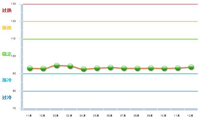 和中国自行车协会联合发布中轻自行车行业景气指数,2016年12月,自行车行业主营业务收入景气指数93.75,与上月基本持平。