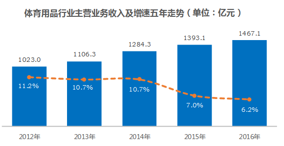全国体育用品制造业主营增速五年连续下降