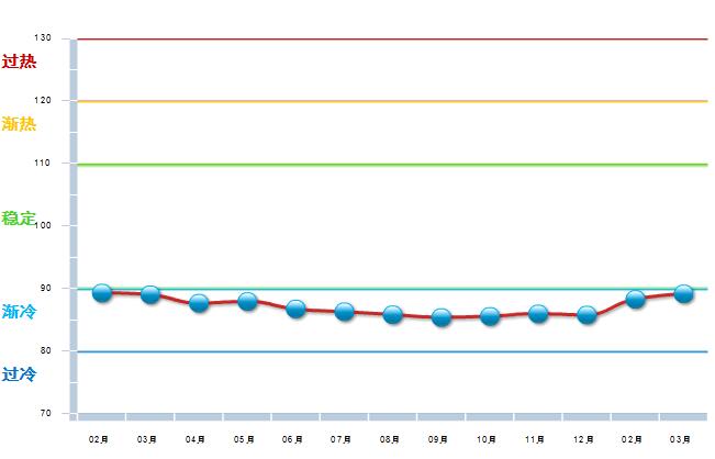 2016年2月至2017年3月,中轻皮革景气指数基本稳定,在90附近小幅波动,处于渐冷提示区运行(参见图3)。