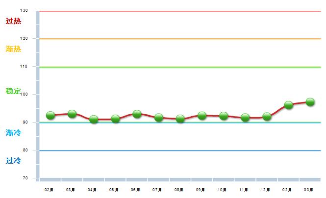 图2 2016.2—2017.3自行车行业景气指数变化态势