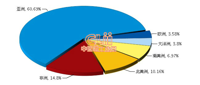2017年1~6月我国陶瓷砖累计出口额各大洲占比情况
