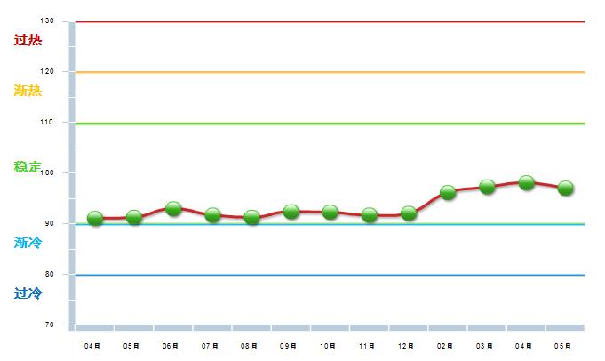 图2 2016.4—2017.5自行车行业景气指数变化态势