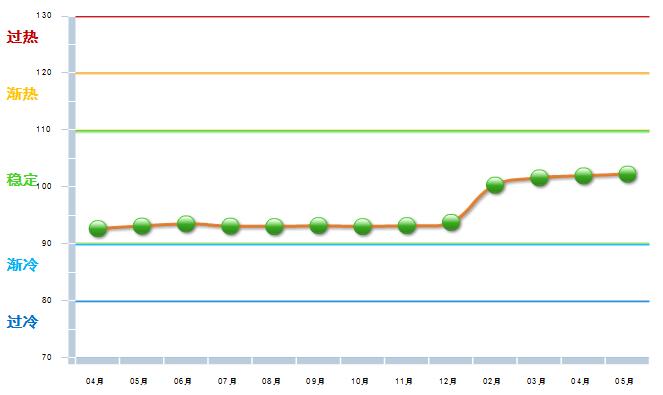 图1 2016.4—2017.5自行车行业主营业务收入景气指数变化态势
