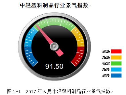 中国轻工业经济运行及预测预警系统监测显示:2017年6月份中轻塑料景气指数为91.5,比5月份回升0.45点。目前,塑料景气指数运行于绿色稳定区间,已连续两个月回升。