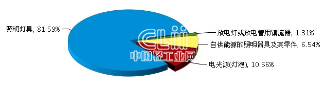 2017年1月~6月全国照明行业累计出口额子行业占比情况