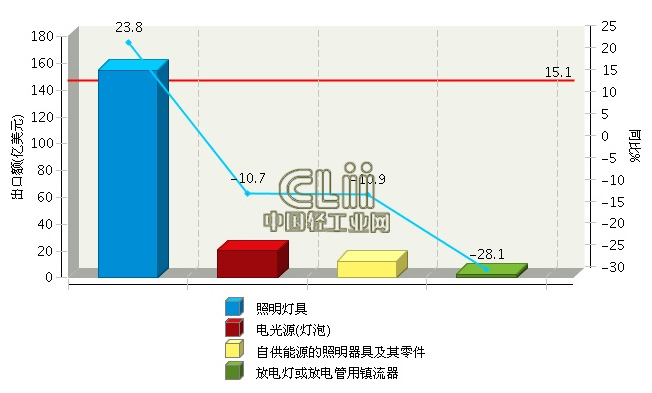 2017年上半年全国照明行业累计出口增速15.06%