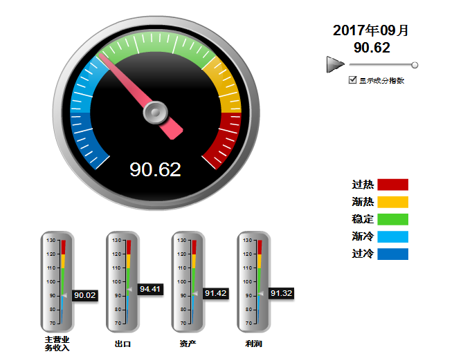 图1 2017.9月工艺美术行业景气指数分指标显示状况