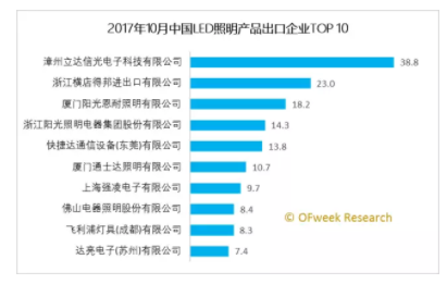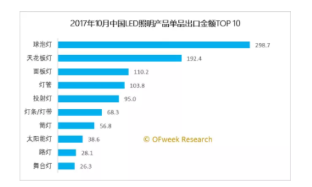 中国LED照明出口10月报告:出口额总共为16.26亿美元