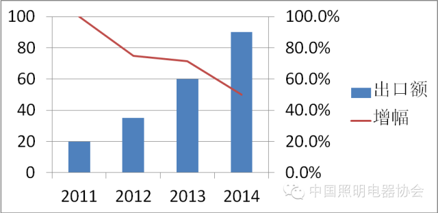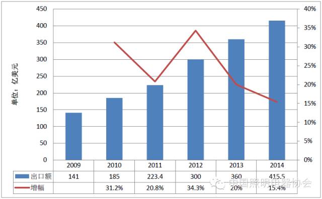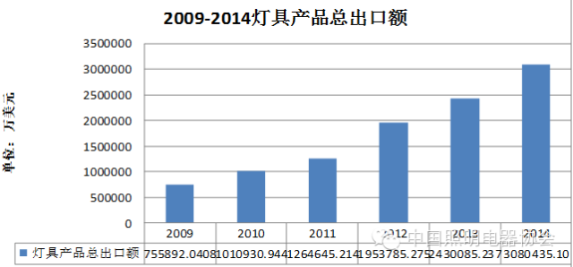 2014年全年灯具的出口额达到308亿美元,同比增长26.7%。