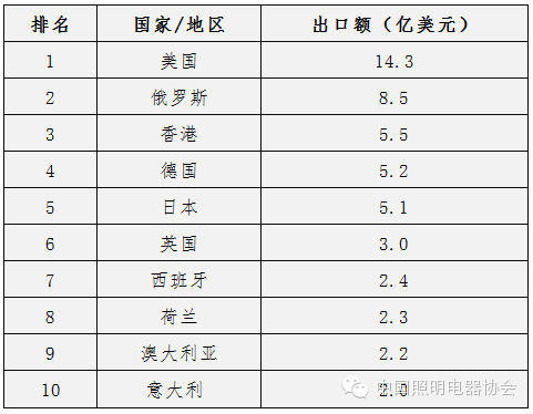 表8 2014年中国LED照明产品出口国家和地区前10位