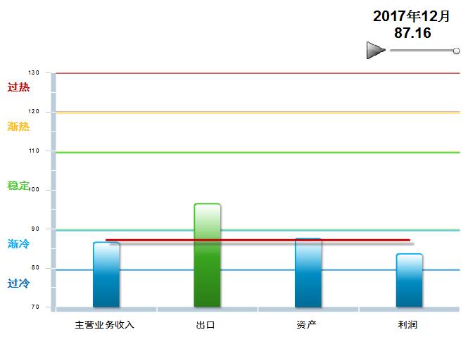 2016年11月至2017年12月,中轻皮革景气指数基本稳定,在90附近小幅波动,处于渐冷提示区运行(参见图3)。
