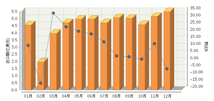 据海关数据显示,2017年全国陶瓷制餐具行业累计出口额51.57亿美元,同比增长2.94%。从月度出口情况看,全年仅2、12月同比下降,其他月份均正增长;3月份完成出口额3.96亿美元,同比增长33.96%,增速为全年单月最高;12月份完成出口额5.48亿美元,为全年单月最高出口,但同比下降5.14%。