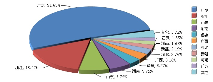 - 2017年1~9月全国家电行业出口额分布2017/12/22 14:21:28