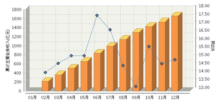 2017年1月~12月,全国自行车制造行业累计完成主营业务收入1,657.01亿元,同比增长14.93%。与11月份累计增速基本持平。(参见图2)