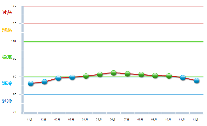 图2 2016.11----2017.12月工艺美术行业景气指数变化态势