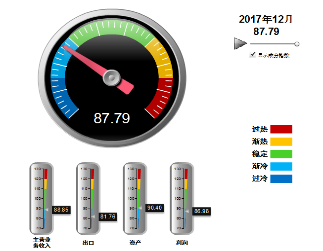 图1 2017.12月工艺美术行业景气指数分指标显示状况