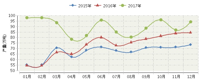 日用玻璃制品产量三年月度走势