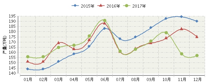 玻璃包装容器产量三年月度走势