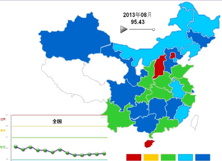 2013年8月中轻文体景气指数为95.43,继续停留在“稳定”提示区(参见图1)。