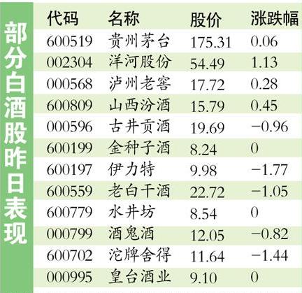 有业内分析人士指出,除茅台外,预计一季度白酒企业业绩压力仍较大,由于终端销售逐渐持稳,库存也有所改善,一季度有可能是全年最差时点,二季度和三季度同比下降幅度有望收窄,四季度部分公司将实现正增长。