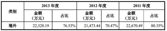 由上表可见,公司的产品外销占比较大,虽然公司目前已经开始逐渐加大内销市场的拓展力度,但短期内,对境外市场的依赖程度仍较高。虽然公司目前已