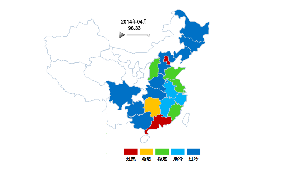 图1-3 2014年4月份体育用品分地区景气指数冷暖示意图