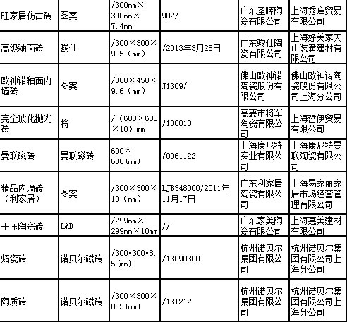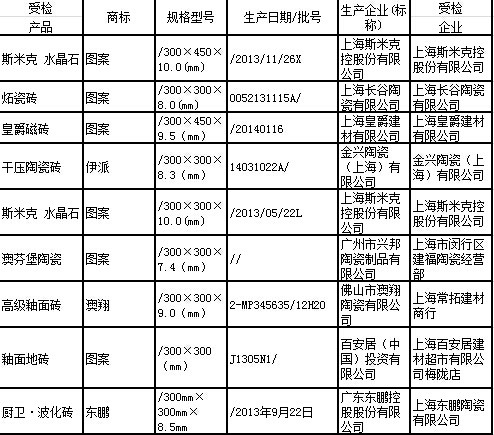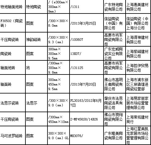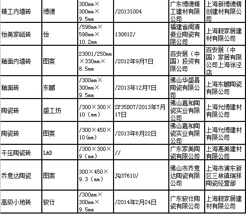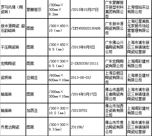 上海质监通报2014年陶瓷砖产品质量监督抽查结果