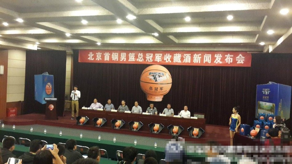 “今天上午‘北京首钢男篮总冠军收藏酒新闻发布会’在首钢篮球中心多功能厅顺利召开,这款市场价1980元的冠军酒计划限量发售20000套!众多首钢领导,嘉宾,北京首钢男篮队员,众多媒体记者以及热心球迷都出席参加了本次大会。”在9月15日的北京首钢篮球俱乐部球迷官方微博上这样介绍道。