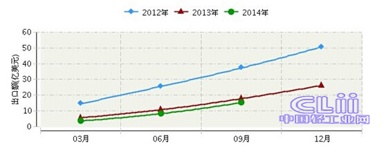2014年1月~9月山东省文教体育行业累计出口额15.49亿美元,同比下降13.93%。