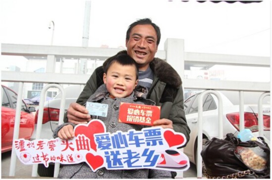 泸州老窖头曲爱心车票送老乡温暖回归