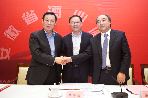 2015年4月19日,安徽省酒业协会第三届会员代表大会暨三届一次理事会(扩大)会议在合肥隆重召开。会议由省酒业协会二届理事会会长季家宏主持,安徽省经信委党组书记、主任牛弩韬、副主任王庆山出席会议并作专题报告。会上总结了安徽酒业协会二届理事会工作,讨论了三届理事会工作规划,选举产生第三届理事会主要成员,推选古井集团董事长梁金辉担任安徽省酒业协会会长,继续聘任李文汉担任协会秘书长。