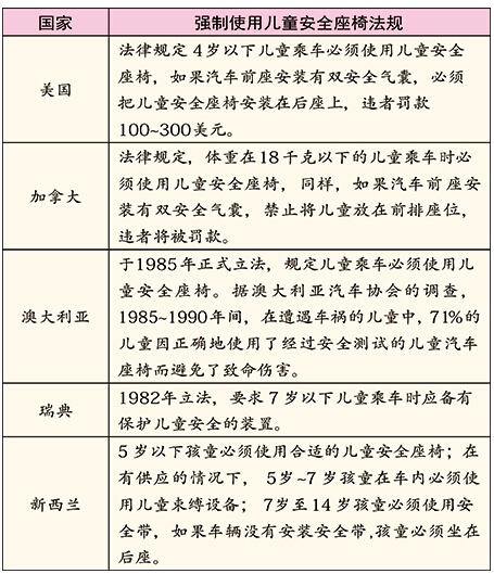 多国强制使用儿童安全座椅(部分)