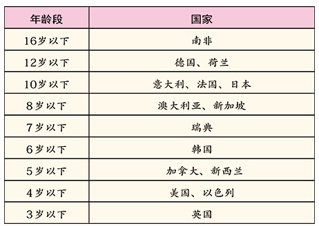 各国安全座椅使用对象年龄规定(部分)