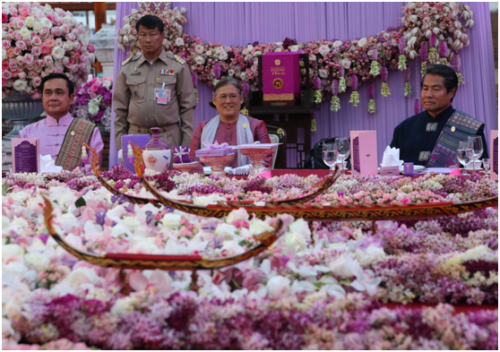 诗琳通公主殿下(中间)、泰国总理巴育·占奥差上将(左一)、枢密院大臣帕拉功·素瓦纳拉阁下(右一)、各界政要、名流约250位嘉宾出席宴会。