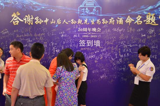 2015年8月,值石岐酒厂建厂60周年,离孙乾先生题名“孙府酒”正好20年。为了答谢孙乾先生题名之情,再续与孙中山后人的缘份,重塑老字号品牌,石岐酒厂于8月29日在利和希尔顿酒店举行了答谢晚会,孙中山曾侄孙、孙乾之子——孙必胜、孙必达先生应邀出席。活动现场,孙中山文化传播者熙文先生发表慷慨激昂的演讲,寄托了人们对孙中山先生无限敬仰的感情。