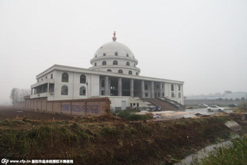 10月6日,河南洛阳一村子的荒郊,一座酷似美国白宫(新浪编者注:应为美国国会)的建筑特别引人注目,据了解,这是一家正在建设的酒厂,目前建筑的内部还没有装修完毕。