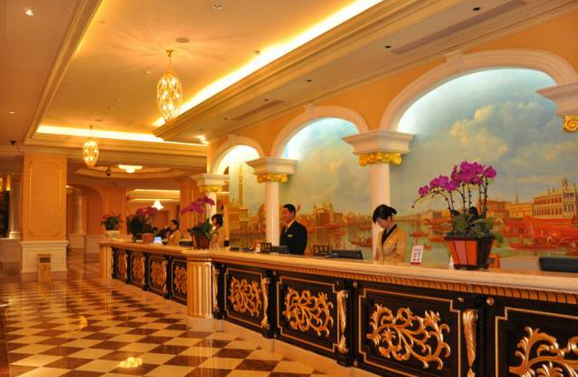 灯光可以起到引导顾客的作用,明确各个区域的方向,同时营造出大堂豪华、温馨的氛围。