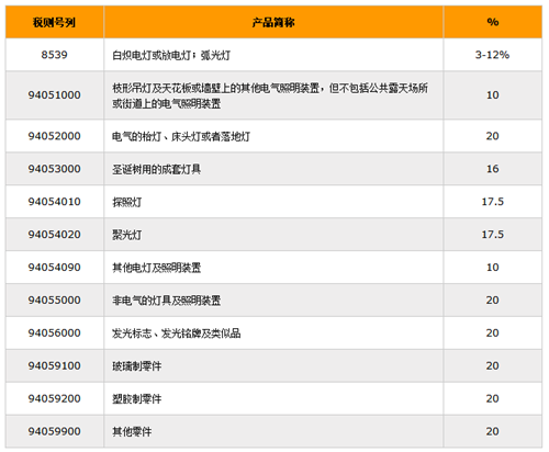 1、2017年照明电器进口关税没有变化,其摘要如下: